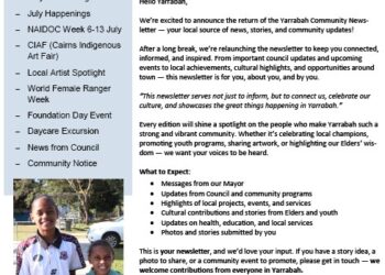 In this issue: Mayor’s message, July happenings, NAIDOC Week, CIAF, Local Artist Spotlight, World... Read More → July 2025 – Yarrabah News